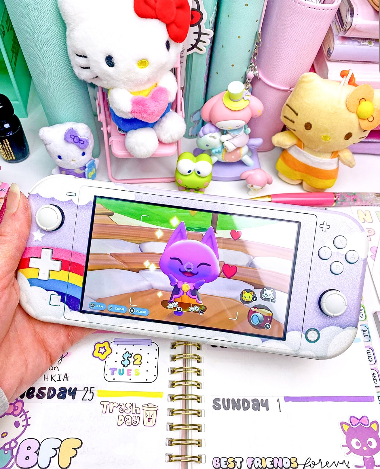 We love this vibrant & fun skin for the Nintendo Switch Lite! Paired with the glitter over-laminate option, it has the perfect shimmery look to really make the pastel purple and rainbow pop!
